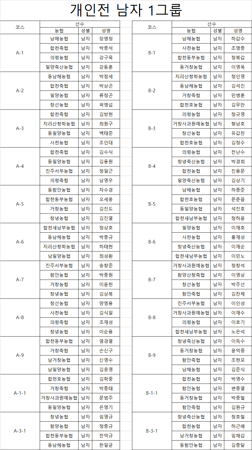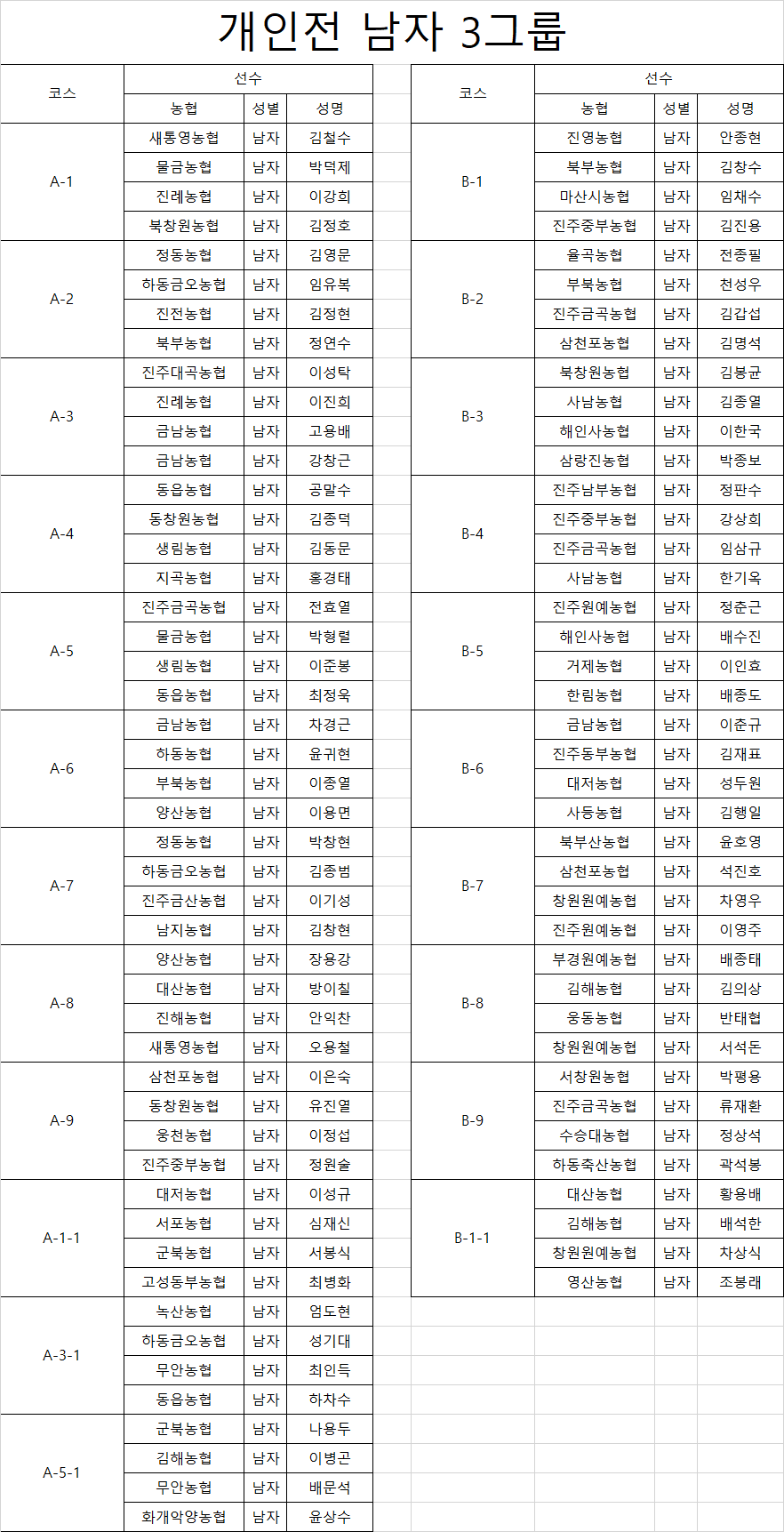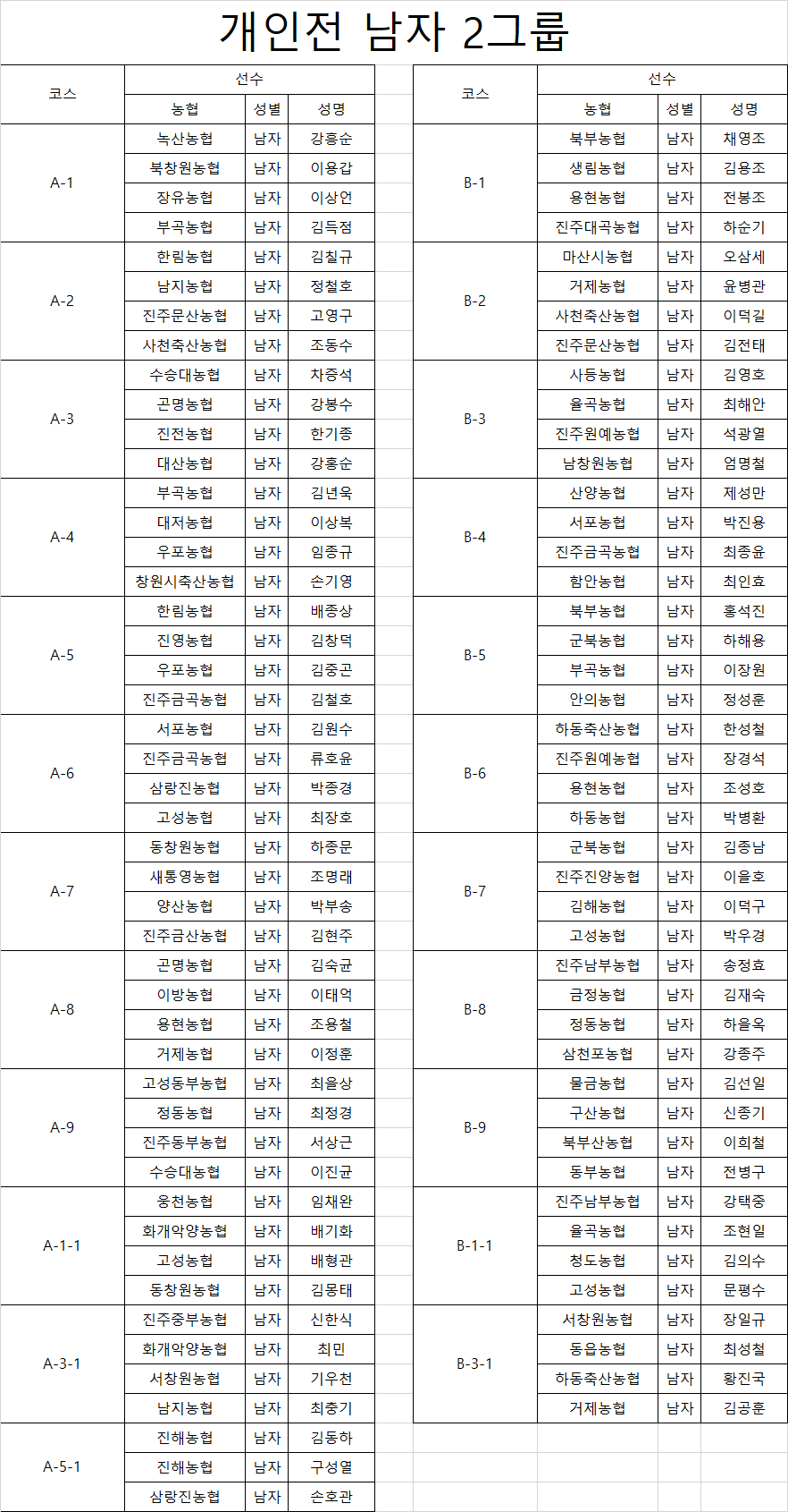 제1회 농협중앙회장배 농업인 파크골프대회 7차(경남) 예선전 조편성