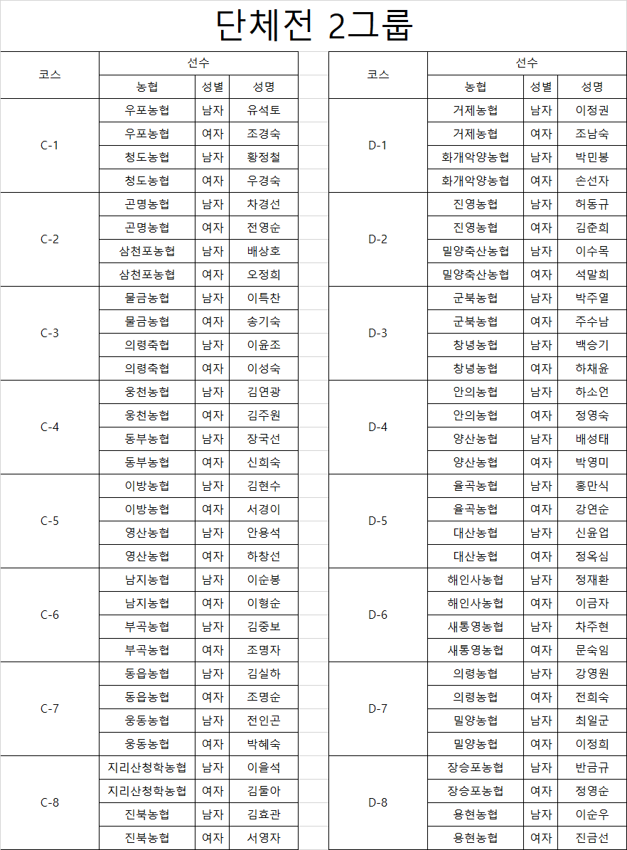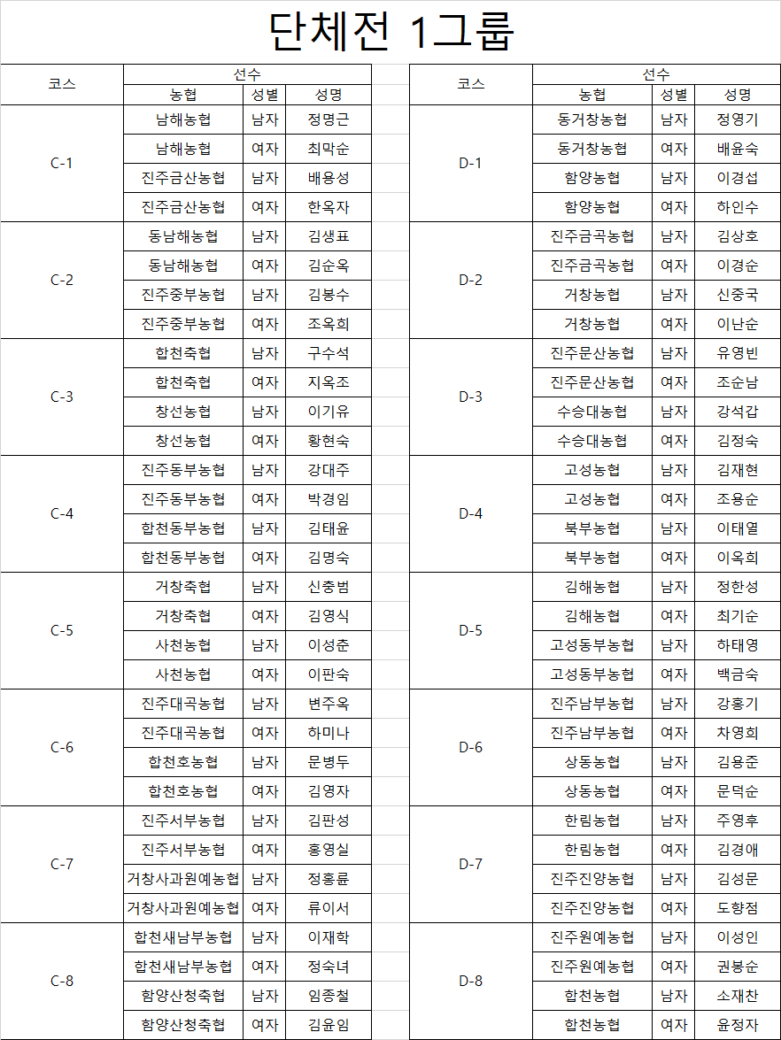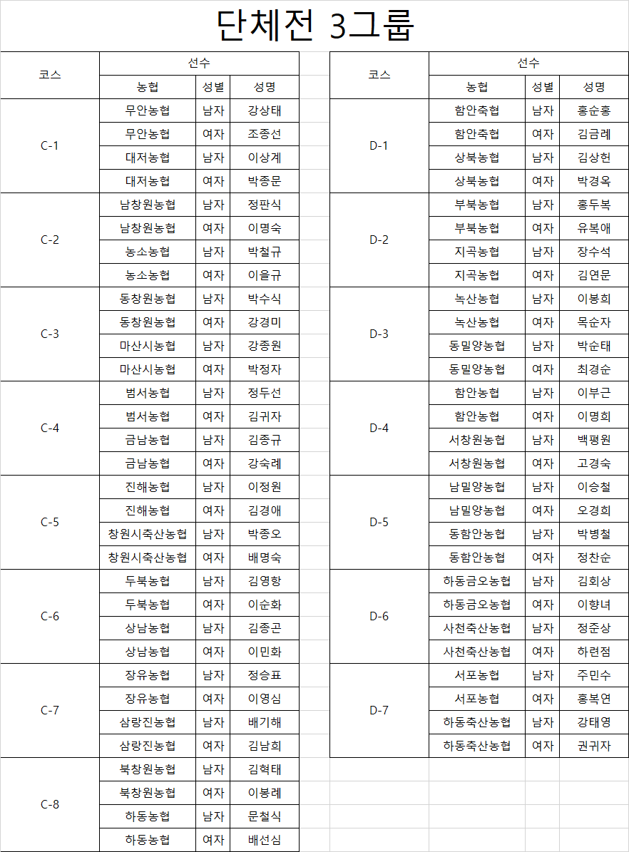 제1회 농협중앙회장배 농업인 파크골프대회 7차(경남) 예선전 조편성