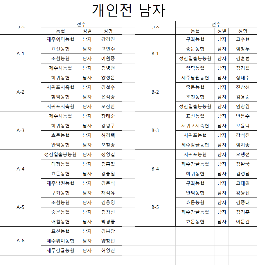 제1회 농협중앙회장배 농업인 파크골프대회 8차(제주) 예선전 조편성