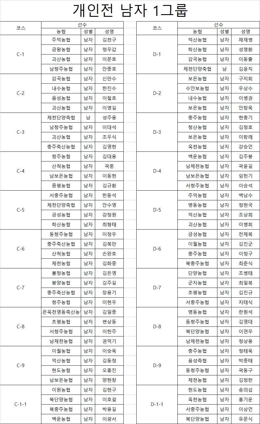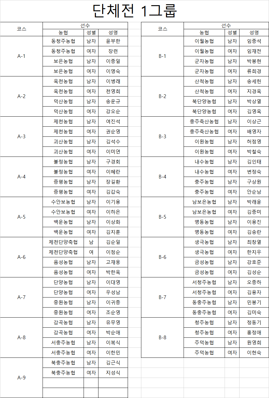 제1회 농협중앙회장배 농업인 파크골프대회 9차(충북) 예선전 조편성