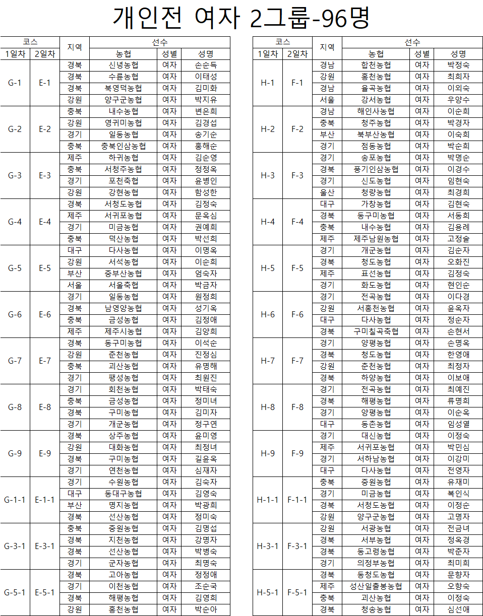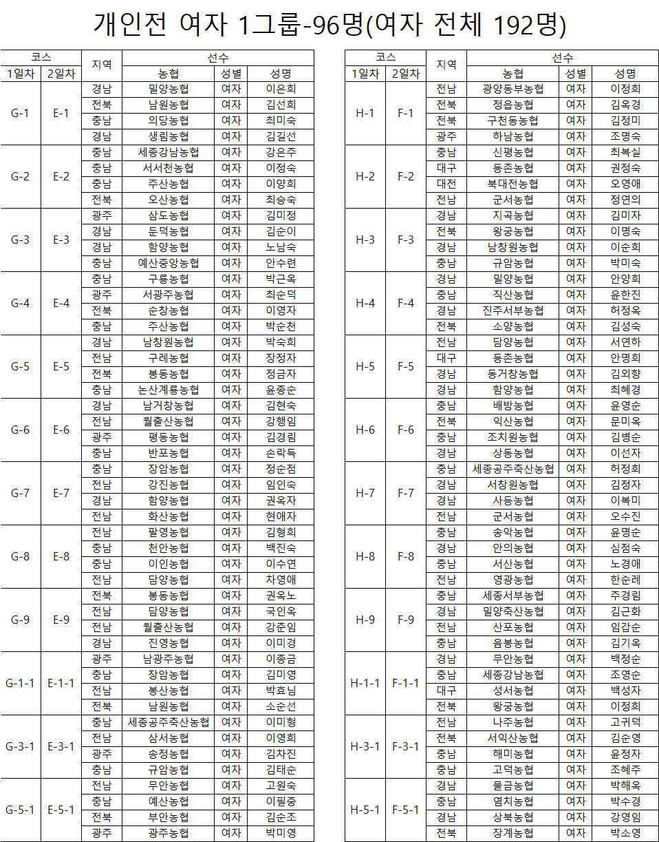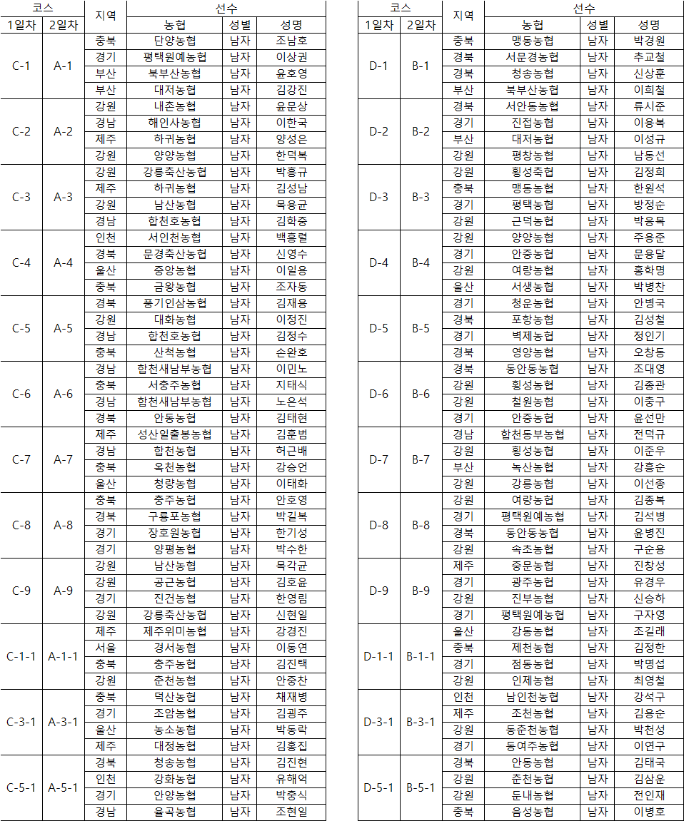 제1회 농협중앙회장배 농업인 파크골프대회 결승전 조편성