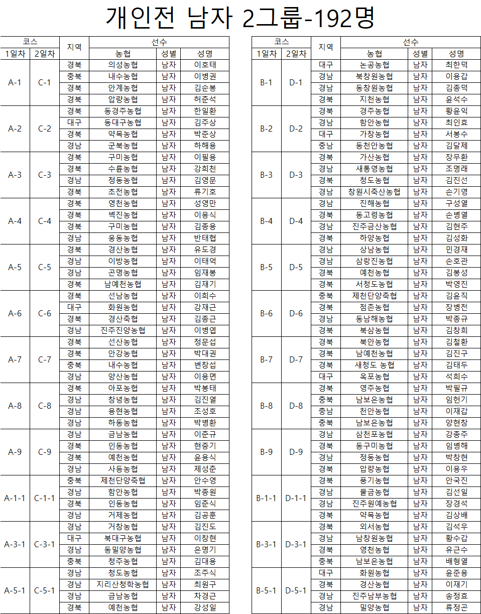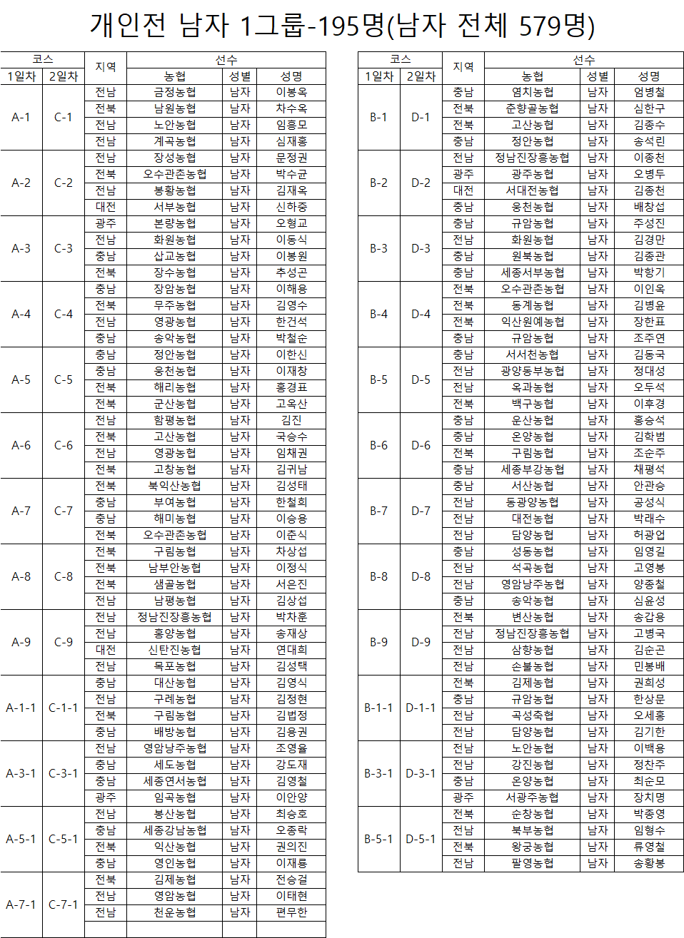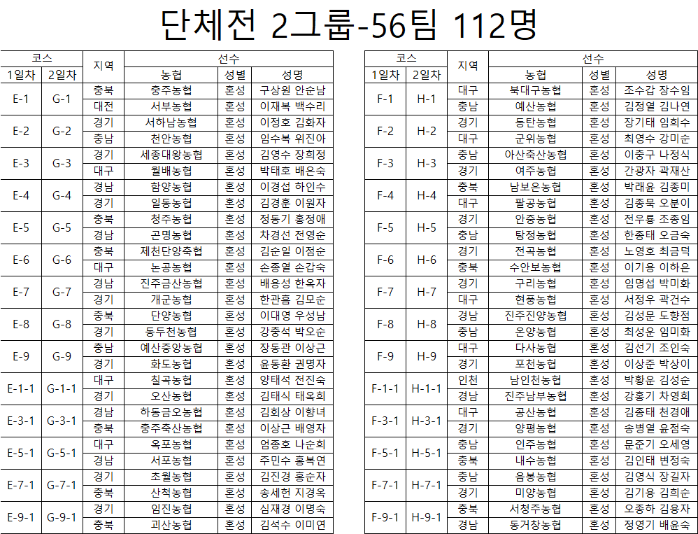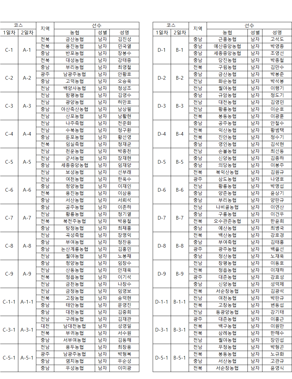 제1회 농협중앙회장배 농업인 파크골프대회 결승전 조편성
