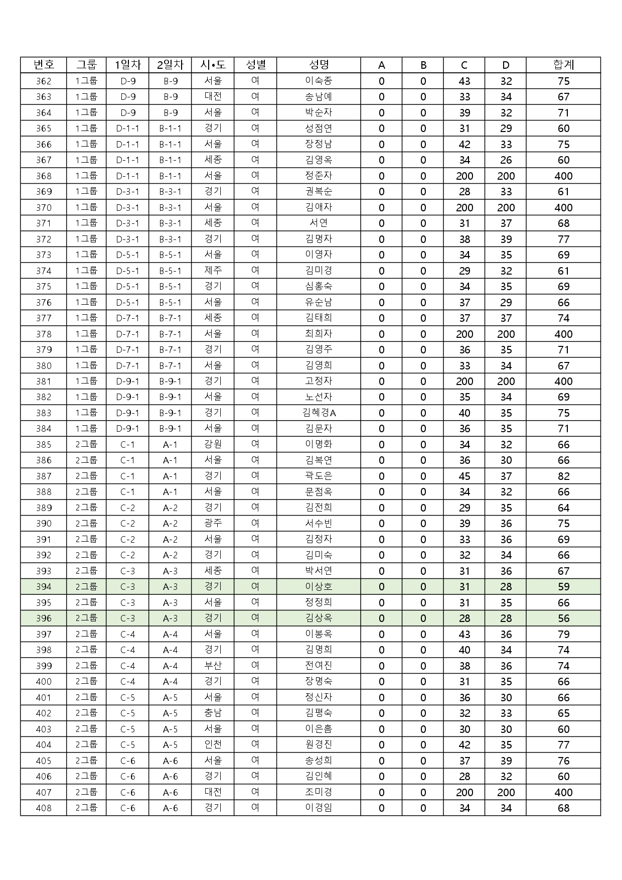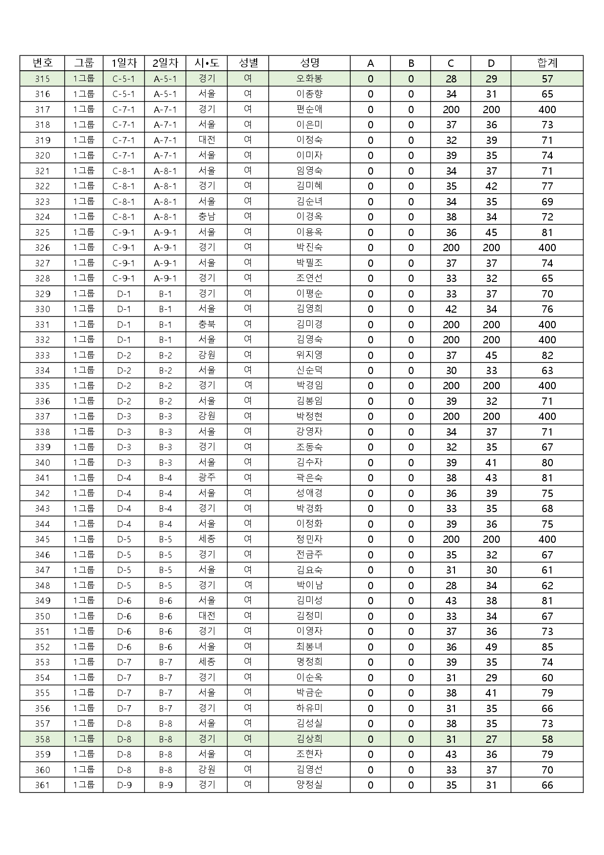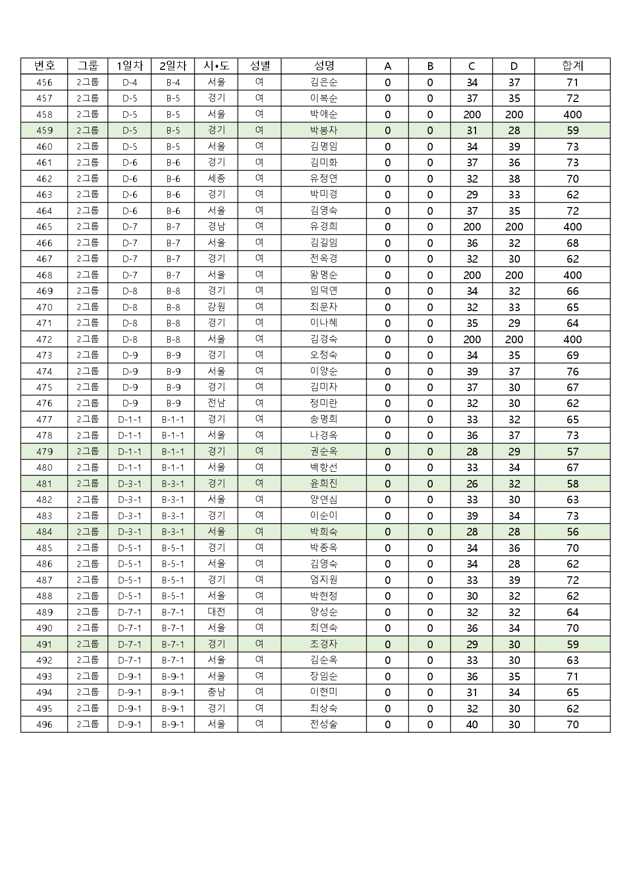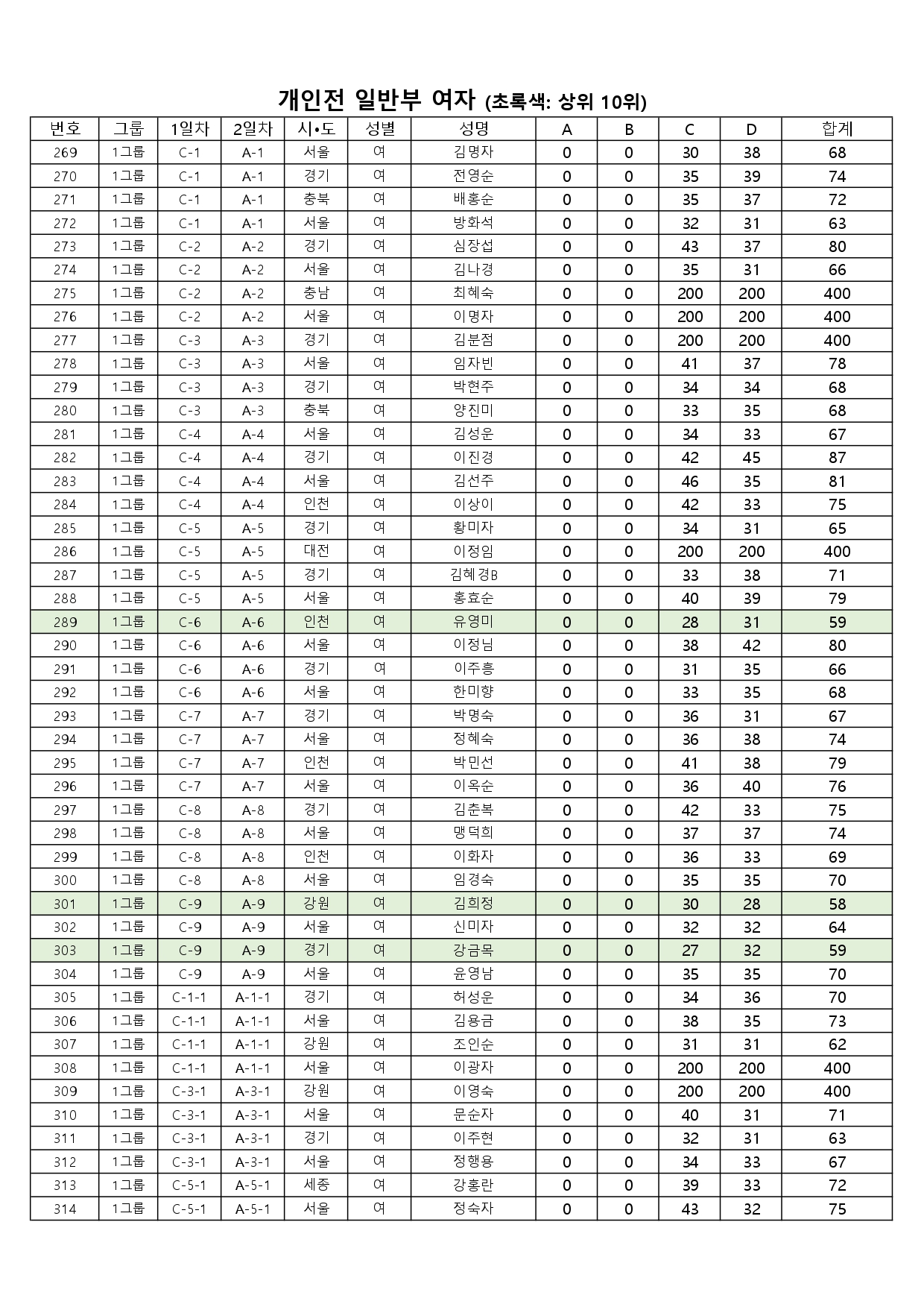 2025 신한 쏠메이트 서울경제 파크골프 마스터즈 전국 대회 점수집계표(개인전 여자_1일차)