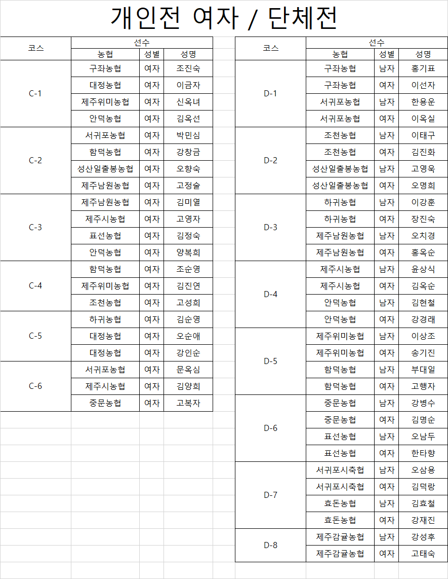 제1회 농협중앙회장배 농업인 파크골프대회 8차(제주) 예선전 조편성