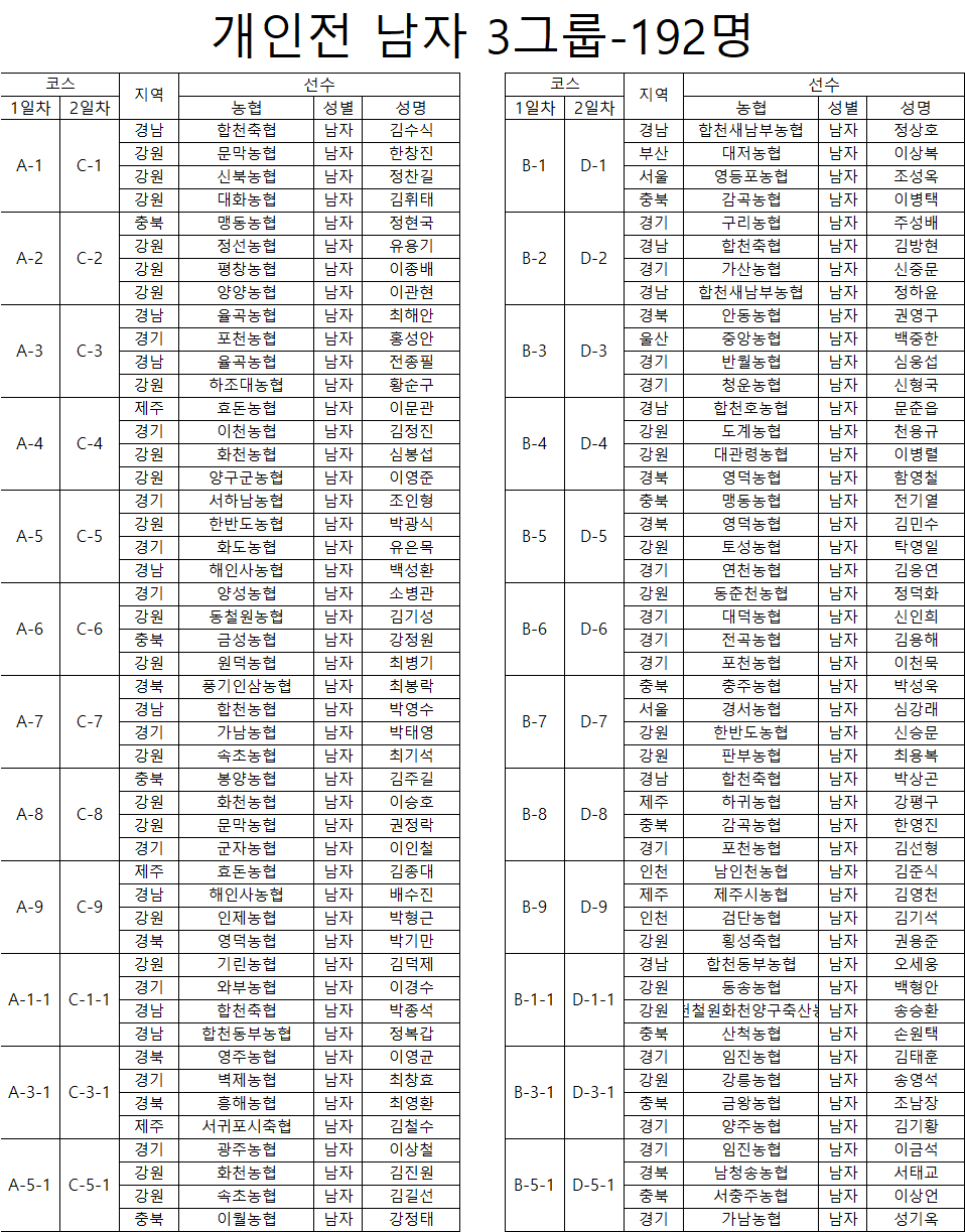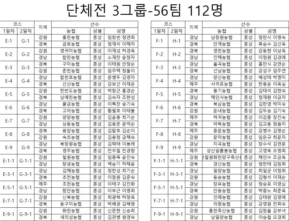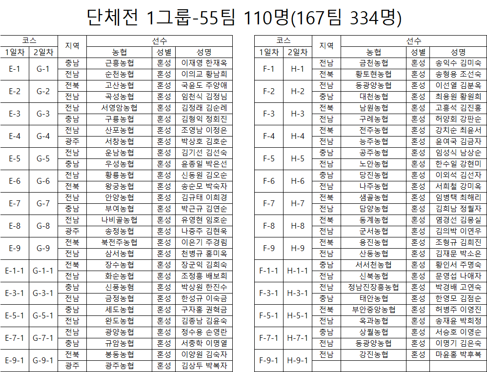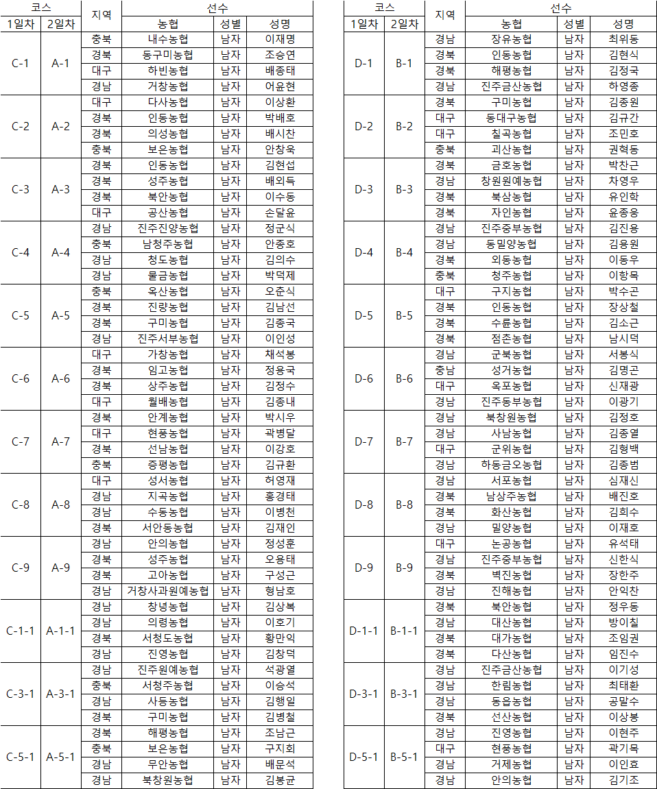 제1회 농협중앙회장배 농업인 파크골프대회 결승전 조편성