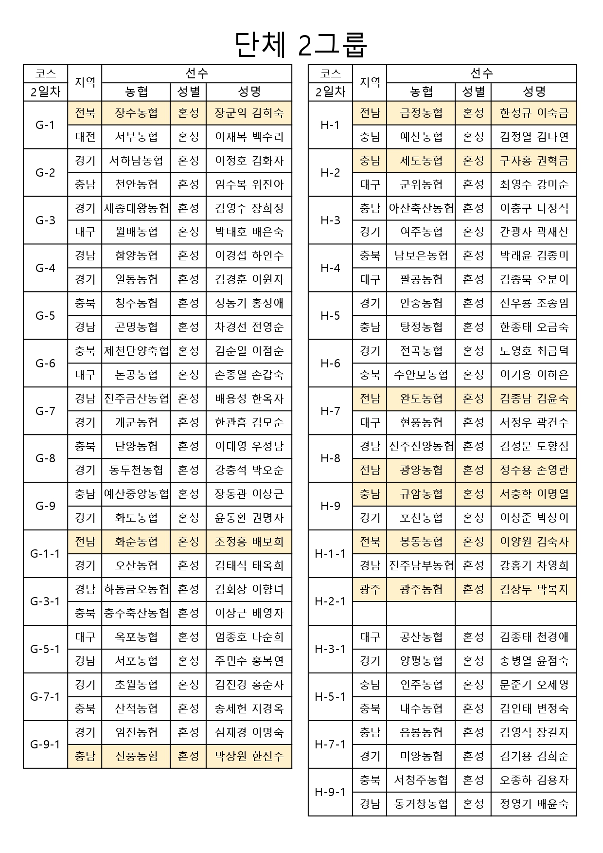 제1회 농협중앙회장배 농업인 파크골프대회 결승전 단체전 조편성 변경
